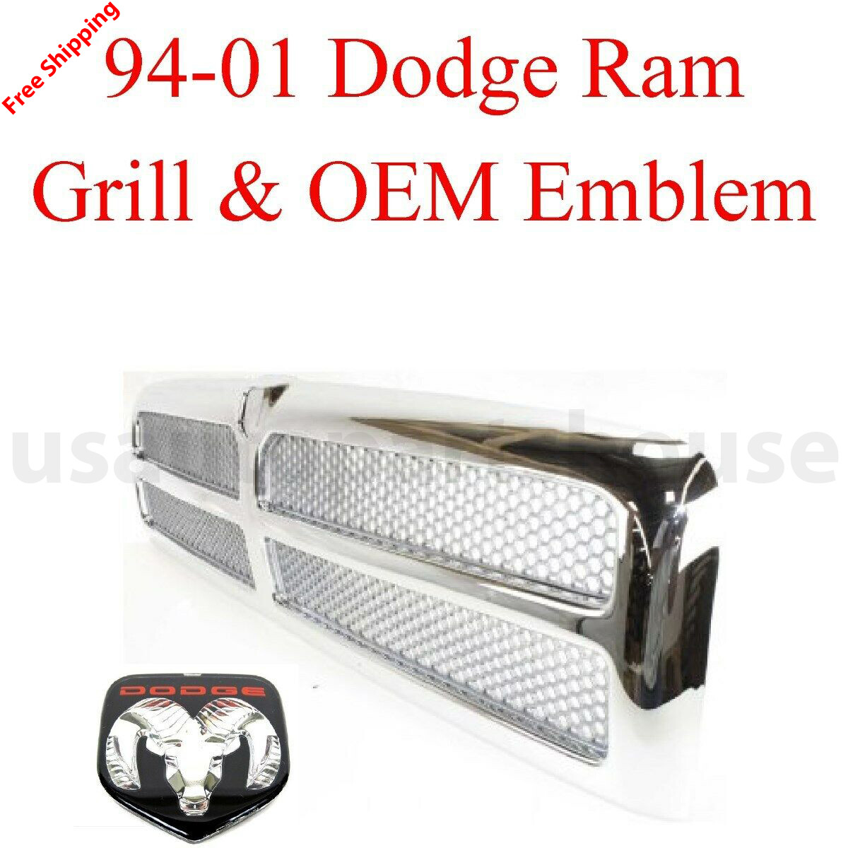94 01 Dodge Ram 2pc Chrome Grill Oem Emblem 1500 2500 3500 95 96 97 98 99 00 Ebay